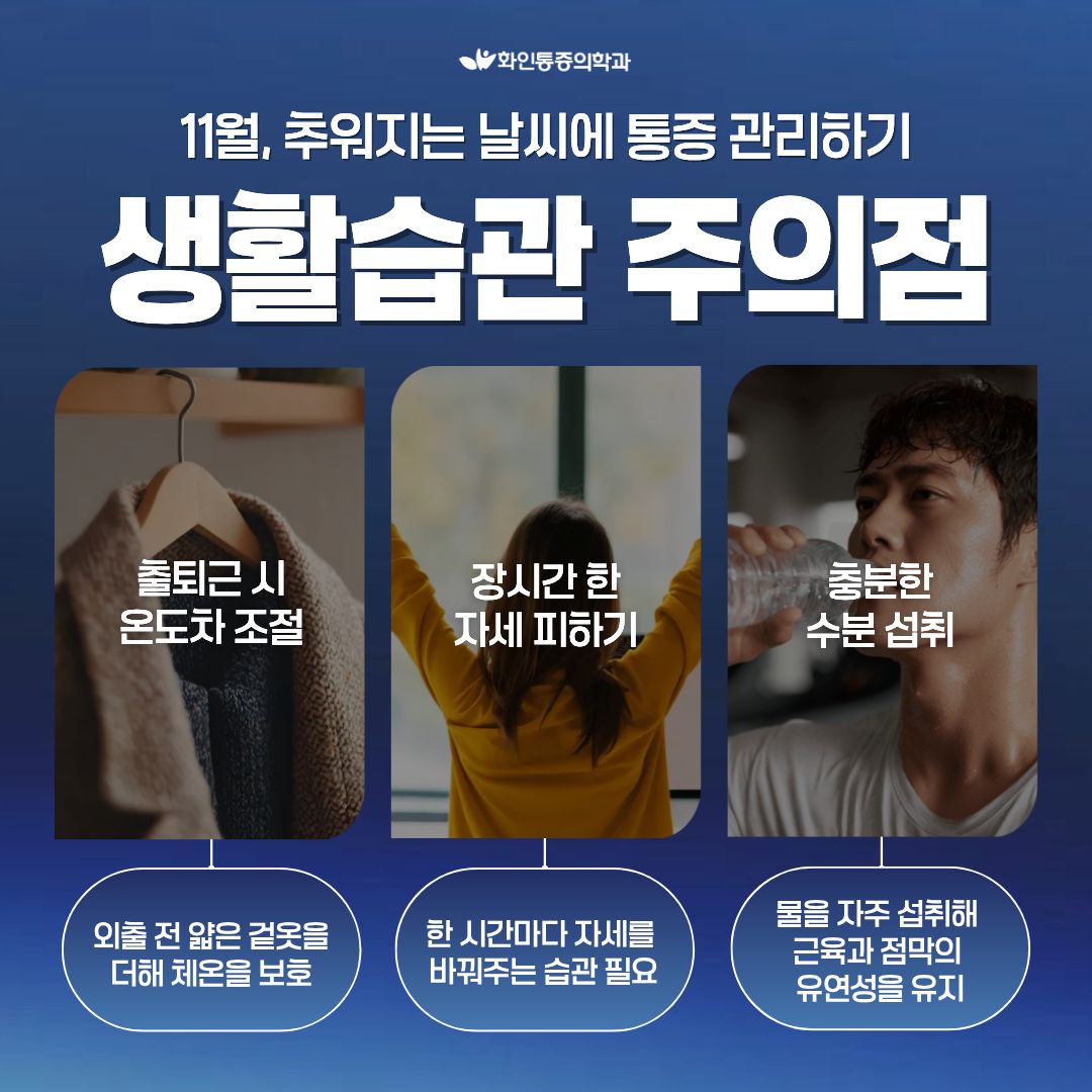 ๐Ÿฉบ 11์›”, ์ถ”์œ„๊ฐ€ ์‹ฌํ•ด์ง€๋ฉด ํ†ต์ฆ์ด ๋” ์‹ฌํ•ด์ง€๋Š” ์ด์œ
